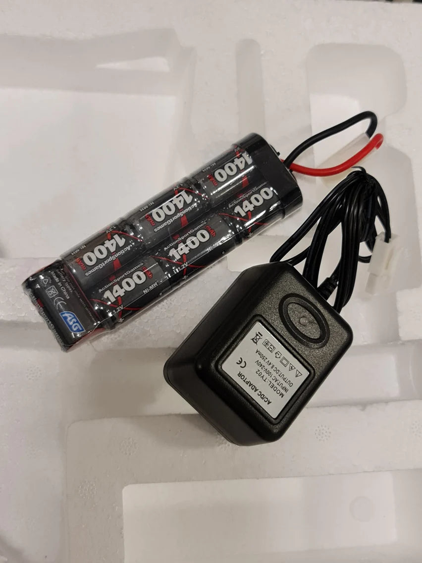 - Basic 8.4V 1400mAh small-type battery and non-smart charger is included (EU plug). Battery and charger are not covered under warranty, we recommend a higher quality intelligent charger like the ASG 1Ah charger.