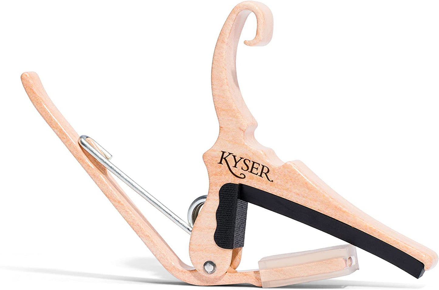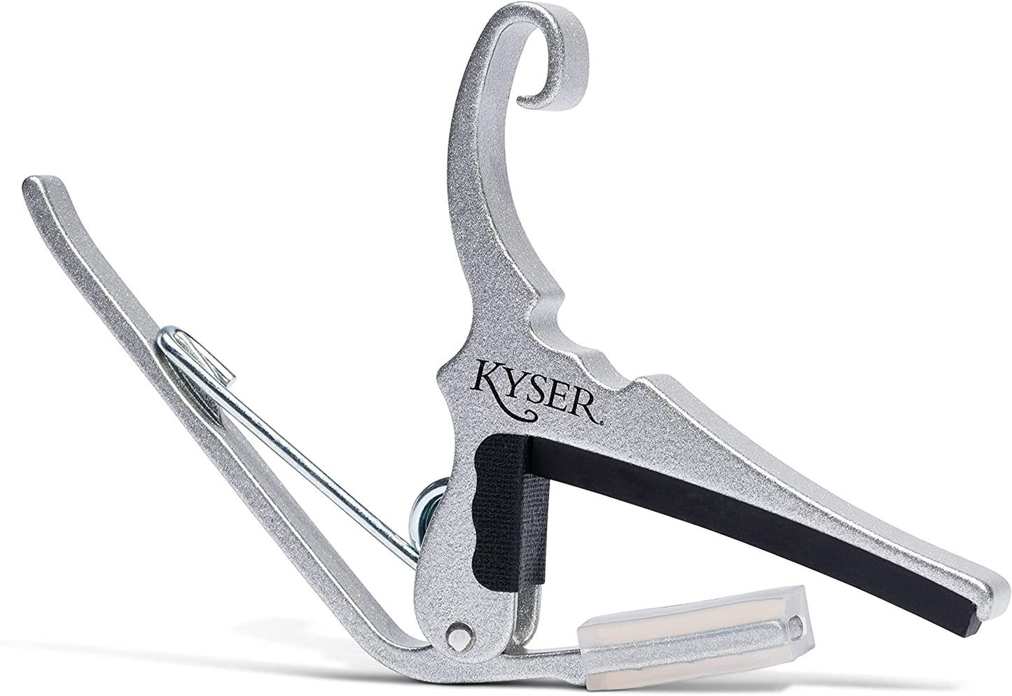 Enhance the sound of your acoustic guitar with the Kyser Quick Change Acoustic Capo. This professional accessory allows for quick and easy key changes during performances. Made with quality materials, it ensures precise and durable use. Take your guitar playing to the next level with the Kyser Quick Change Acoustic Capo.