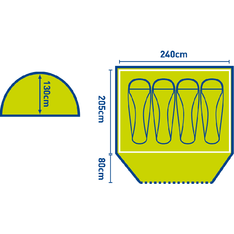 - Groundsheet: Polyethylene (with detachable porch PE sheet)